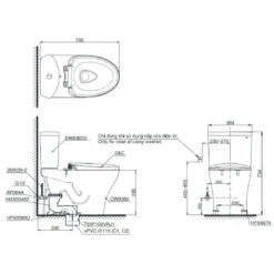 - Phù hợp lắp đặt với nắp rửa điện tử WASHLET (tùy chọn)