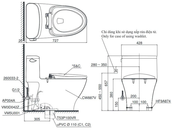 Bàn Cầu TOTO MS887RE2 (MS887E2) Một Khối Nắp Cơ