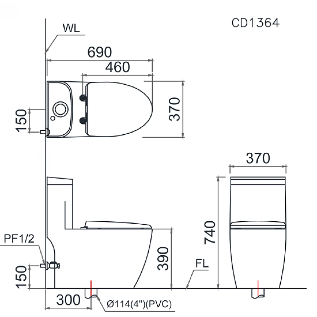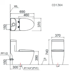 Bồn Cầu Caesar C1364 (CD1364) 1 Khối