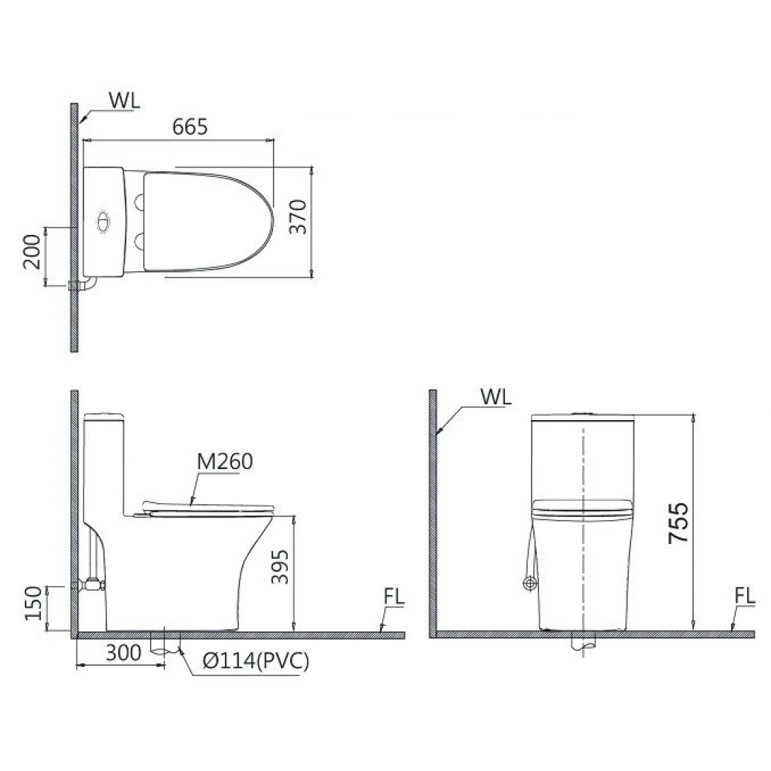 Bản vẽ kích thước bồn cầu 1 khối Caesar CD1391