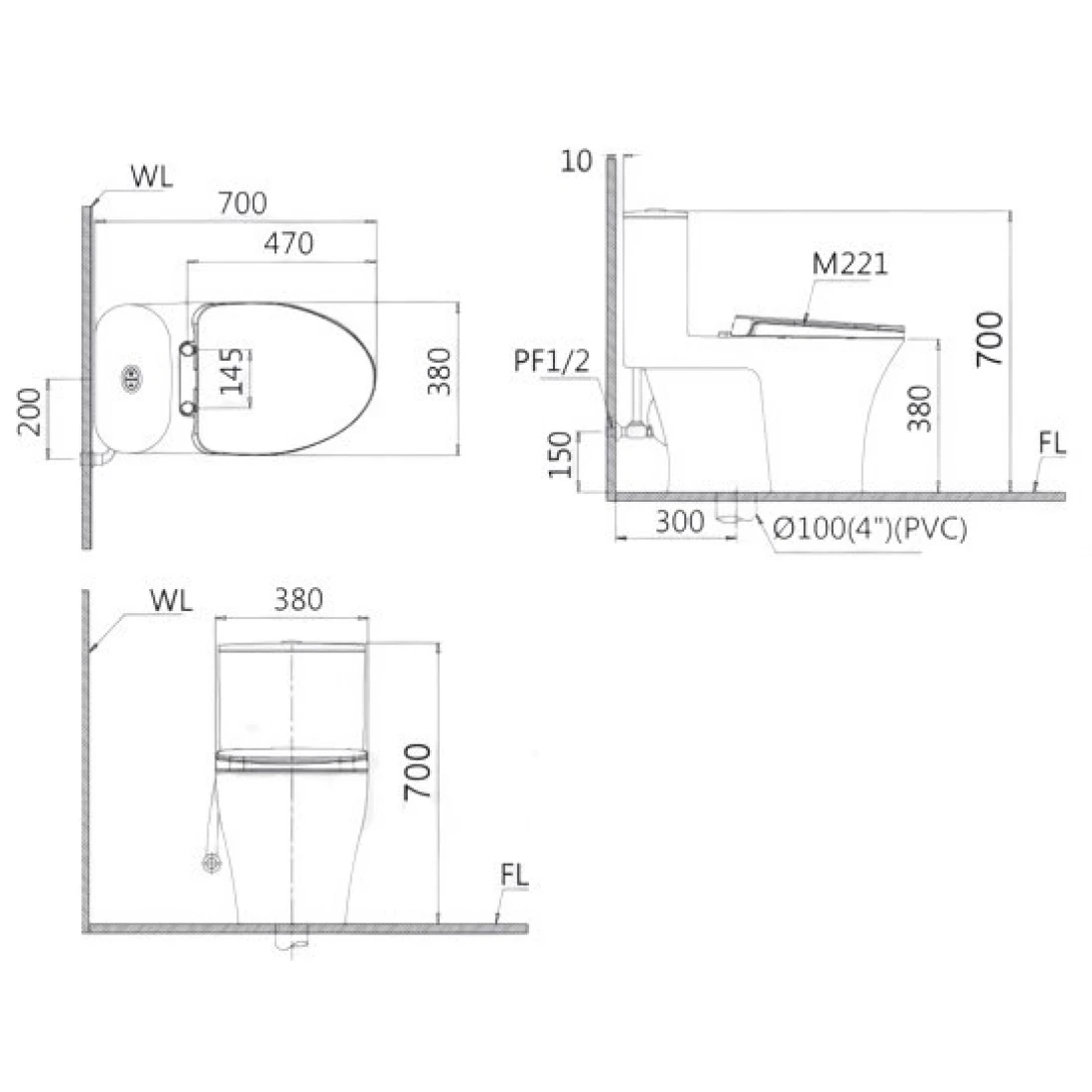 Bồn Cầu CAESAR C1395 (CD1395) Một Khối Nắp Êm