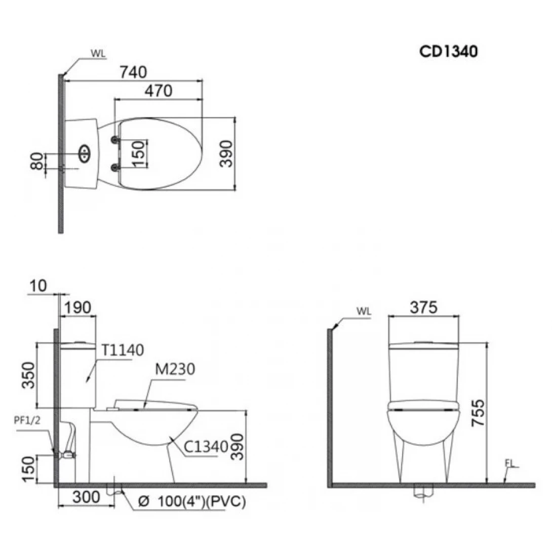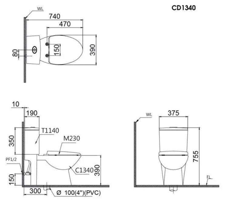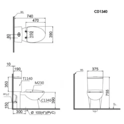 Bản vẽ kỹ thuật bệt vệ sinh Caesar C1340