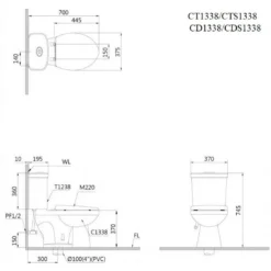 Thông số của bàn cầu CAESAR CTS1338 thùng T1138