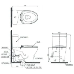 Bản vẽ kích thước bồn cầu điện tử CS 769DRW18 TOTO