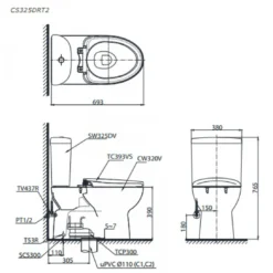 Bản vẽ kỹ thuật xí bệt TOTO CS325DRT2