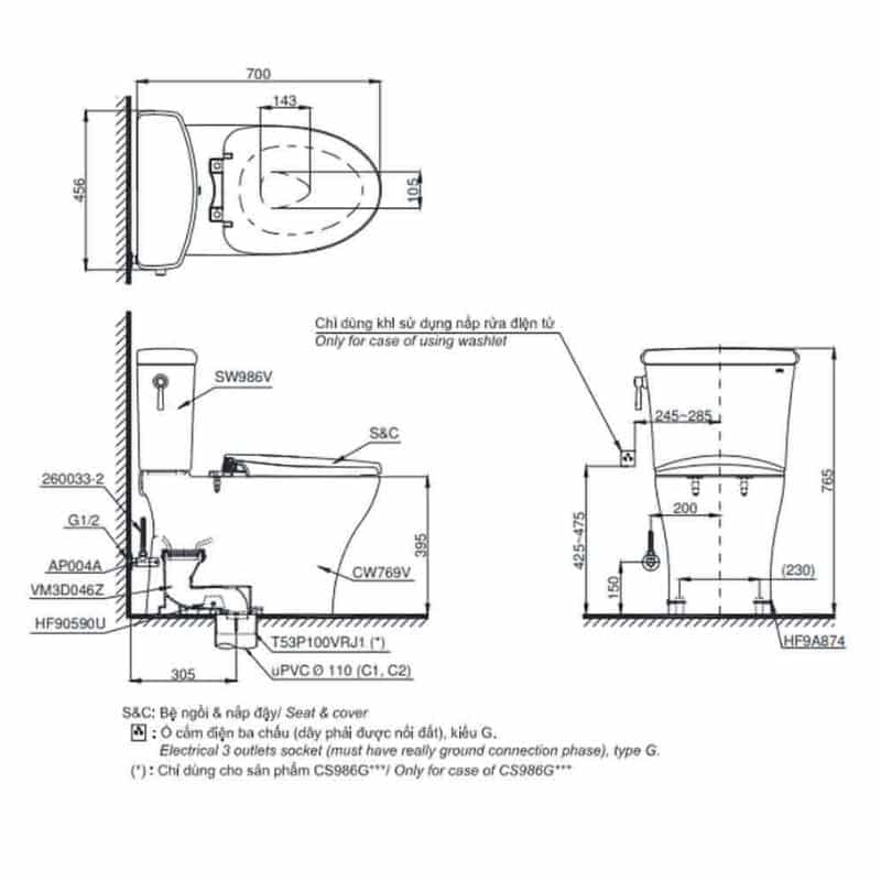 Thông tin cơ bản bồn cầu TOTO CS986GT8