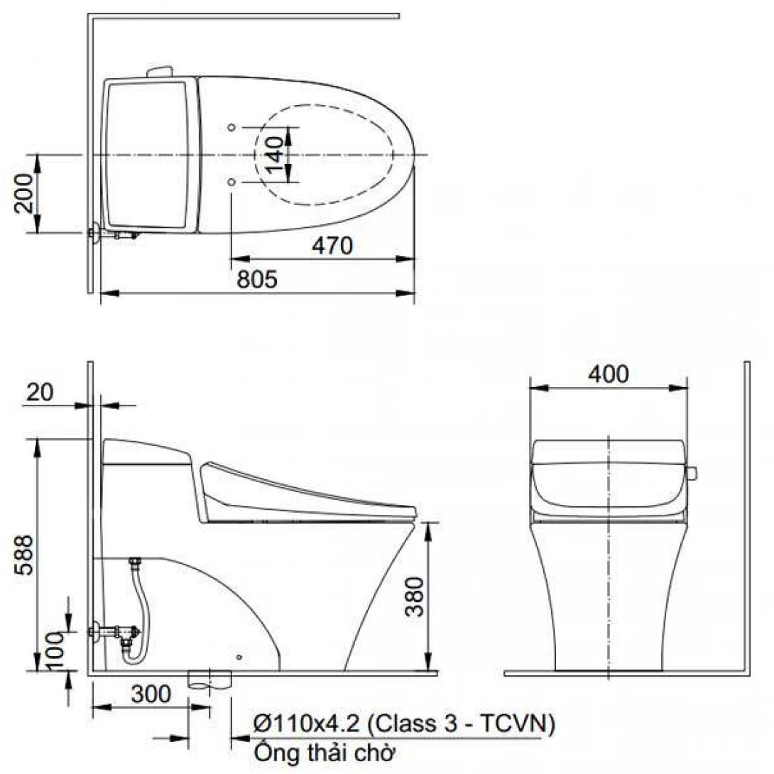 Bồn Cầu INAX AC-1017VRN (AC1017VRN) 1 Khối Aqua Ceramic Xả Gạt