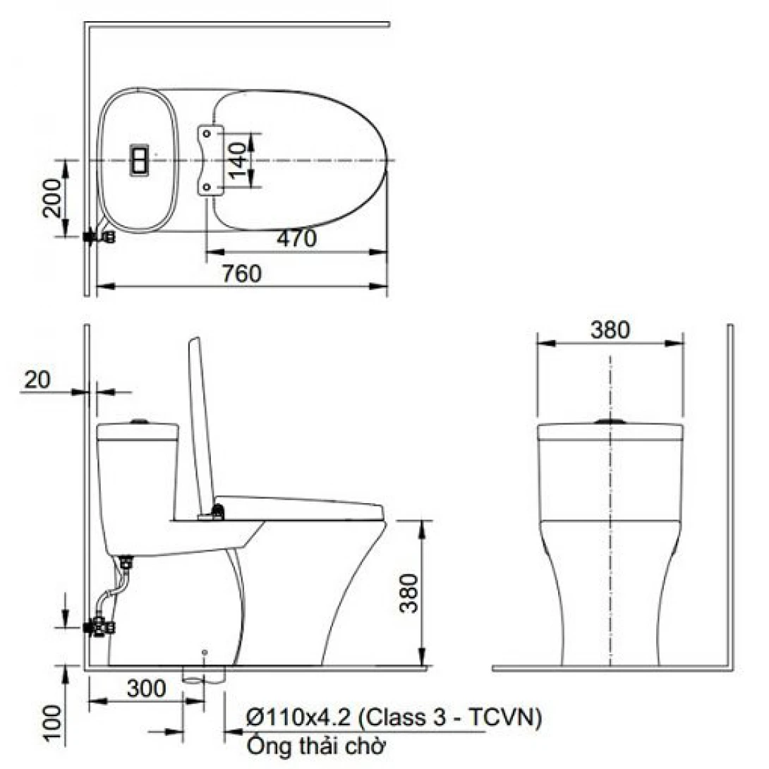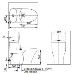 - Tâm thoát bồn cầu: 300mm (+-5)