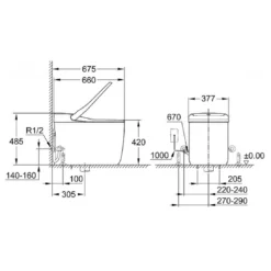 Bản vẽ bồn cầu điện tử Grohe 36492 SH0 đặt sàn