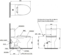 Bản vẽ bồn cầu CS 302DE4 nắp rửa cơ TCW1211A TOTO