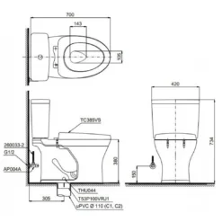 Bản vẽ xí bệt Toto nắp êm TC385VS