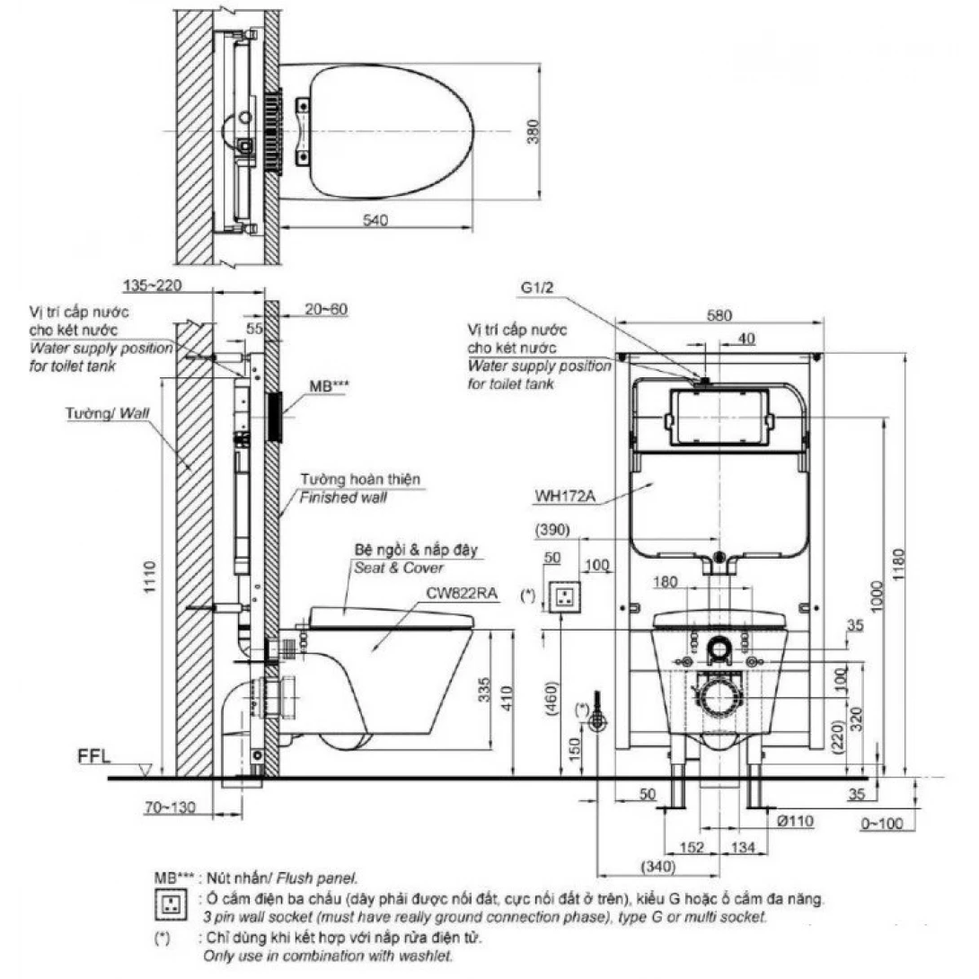 Bồn Cầu TOTO CW822RA/TC600VS Treo Tường