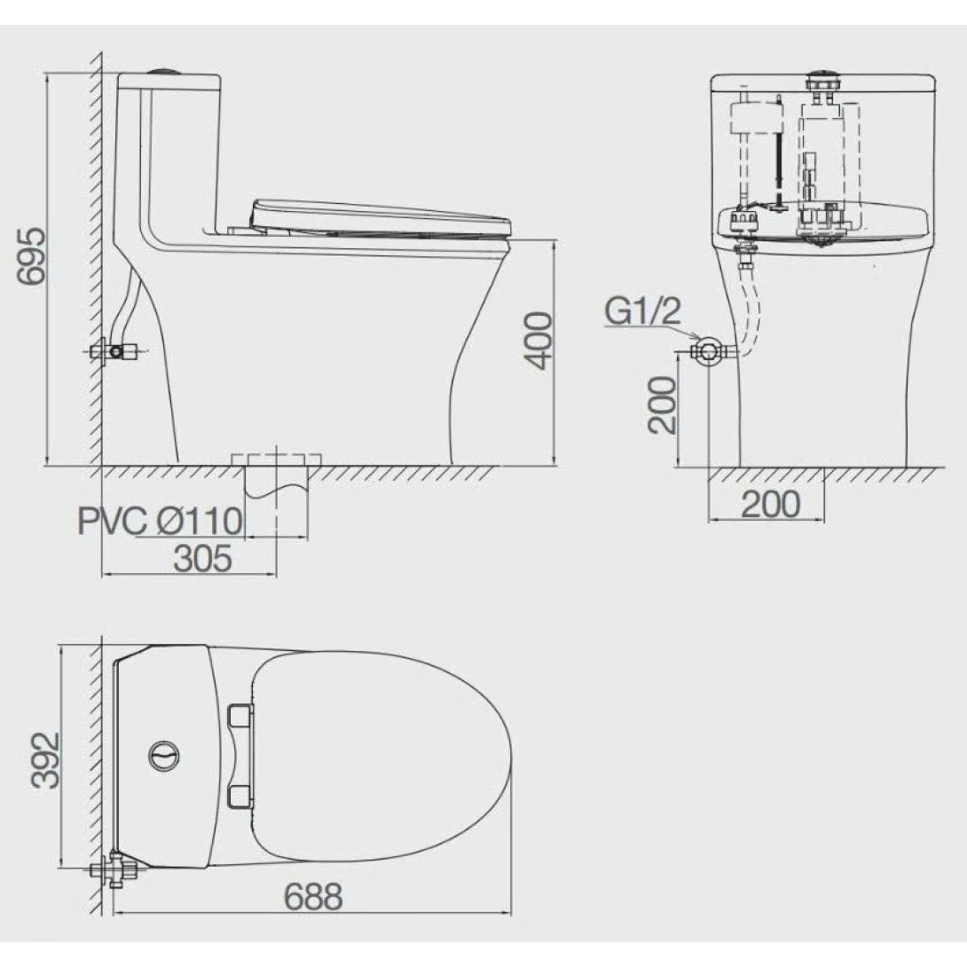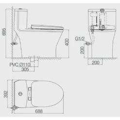 Bồn Cầu Viglacera V803 Nắp Êm 1 Khối + Vòi Xịt VG826