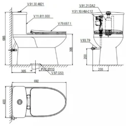 Bản vẽ bệ xí bệt Viglacera V 811 liền khối