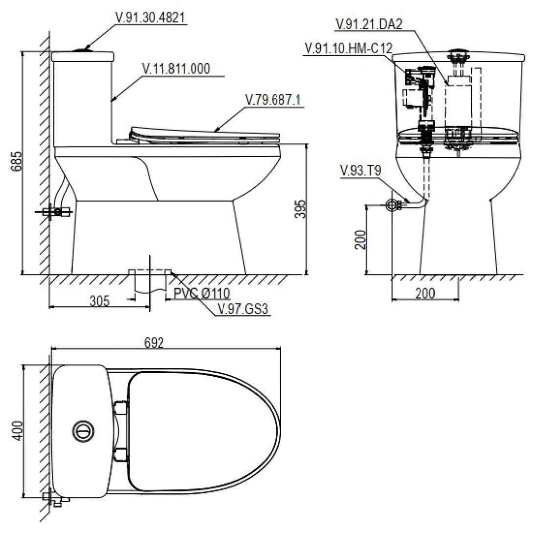 Tính năng bàn cầu 1 khối V811 Viglacera