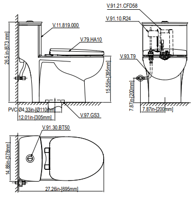 Bồn Cầu Viglacera V819 1 Khối Xả Xoáy