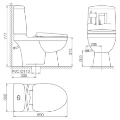 - Kích thước: 690 x 362 x 800 x 777 mm (Dài x Rộng x Cao)