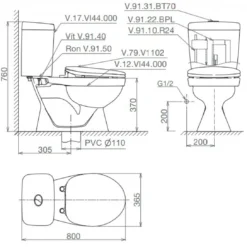 Tính năng bồn cầu VI 44 Viglacera