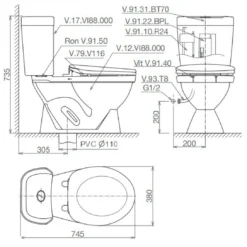 Bản vẽ bệ xí bệt Vl88 Viglacera 2 khối