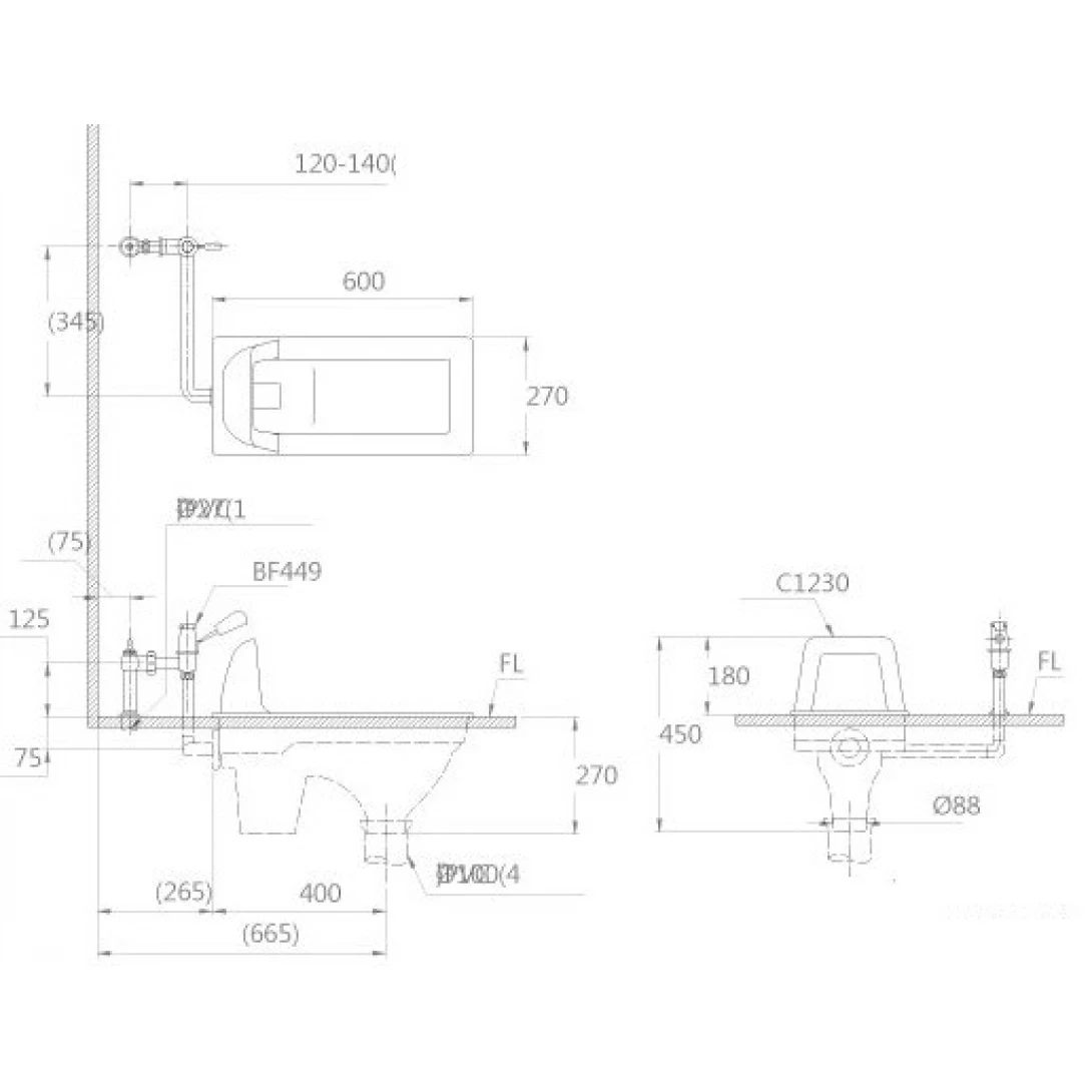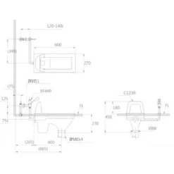 Bản vẽ kích thước bồn cầu xổm C1230R BF525A