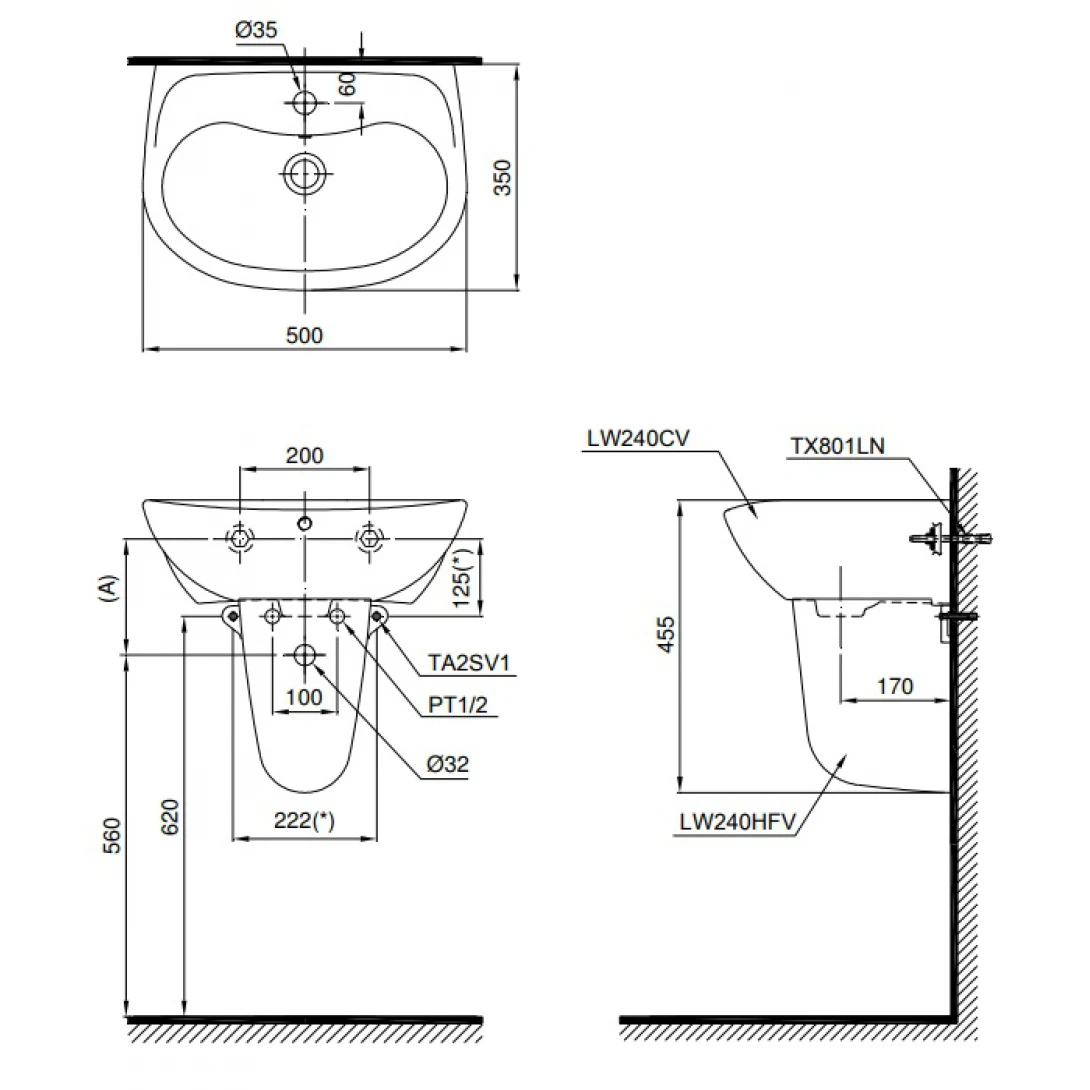 Bản vẽ bồn rửa mặt TOTO LHT 240 CS