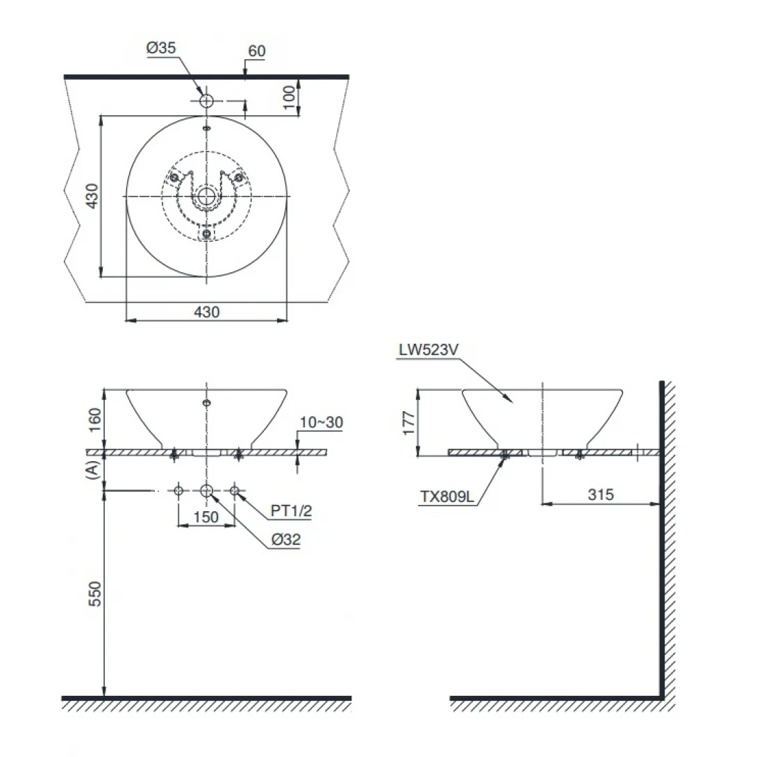 Bản vẽ bồn rửa lavabo TOTO LT523S#XW