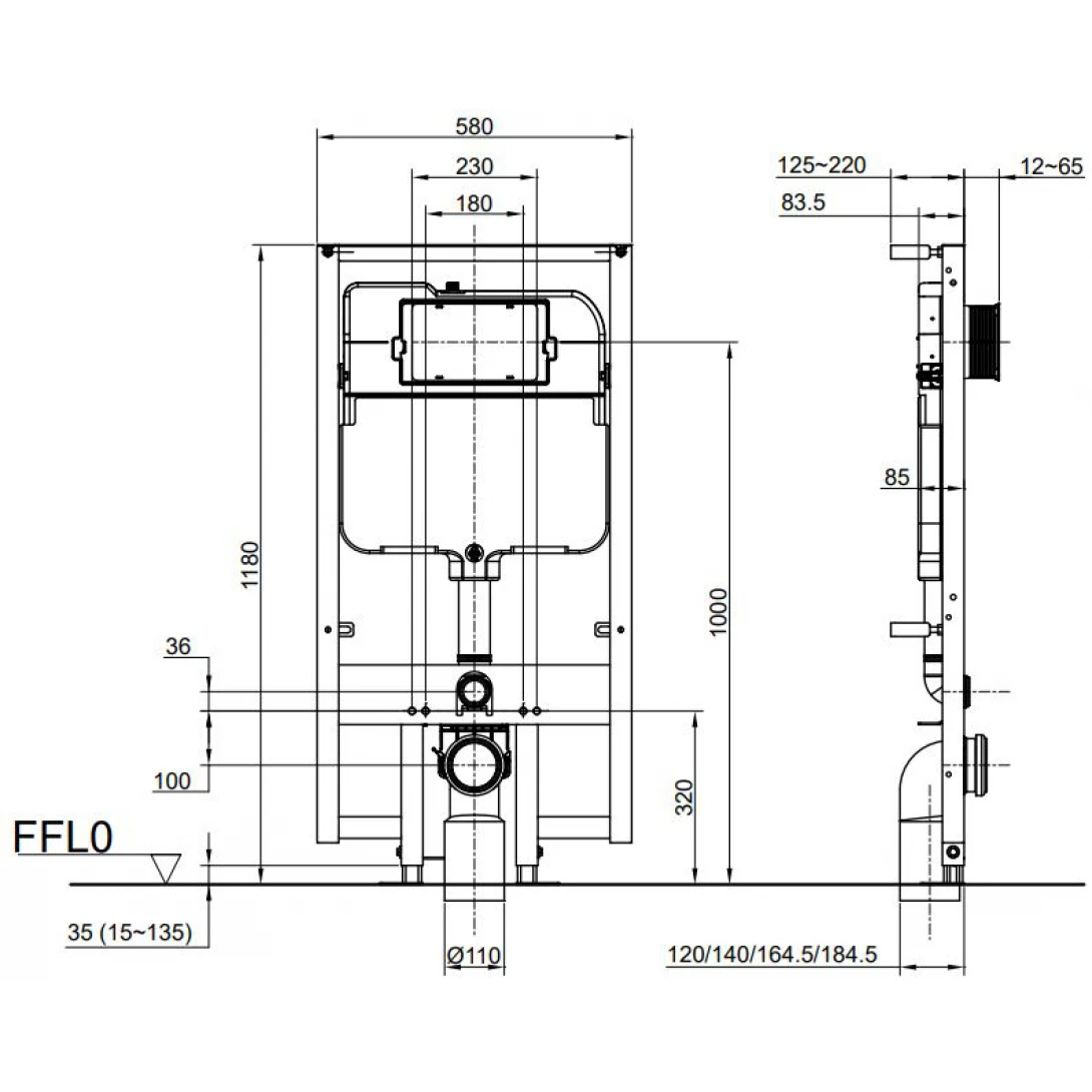 - Tên sản phẩm: Két nước và khung âm tường kèm ống thải cong