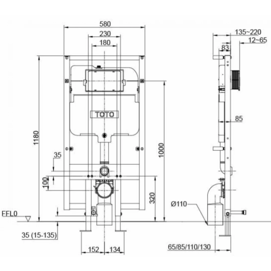- Kết hợp được với các bồn cầu treo tường TOTO CW522EA , CW542HME5UNW1, CW822REA